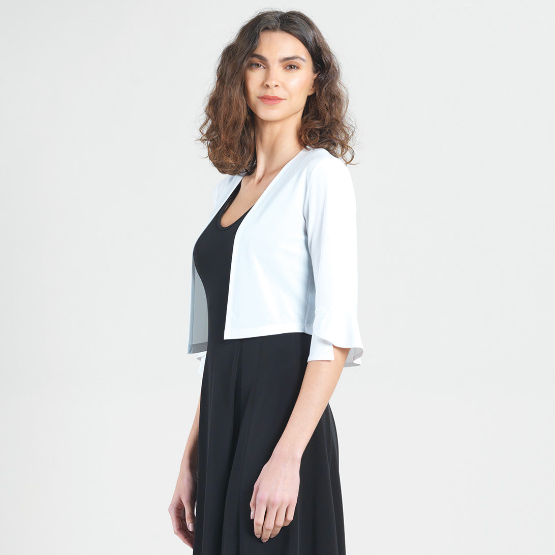 Our Tulip Cuff Shrug is the perfect piece to layer all of your favorite Clara Sunwoo tanks! Featuring an open front, no closure with vented elbow-length tulip cuffed sleeves, and a cropped hem silhouette! Carefree Travel Fabric – Soft Silky Knit Our signature poly blend fibers offer luxurious softness with lightweight, wrinkle-free comfort. This easy-care fabric is quick drying and cooler than linen or cotton, making it perfect for on-the-go wear. Wrinkle Free Travel Friendly Ultra Lightweight Soft Knit Fabric Breathable Jersey Like Feel