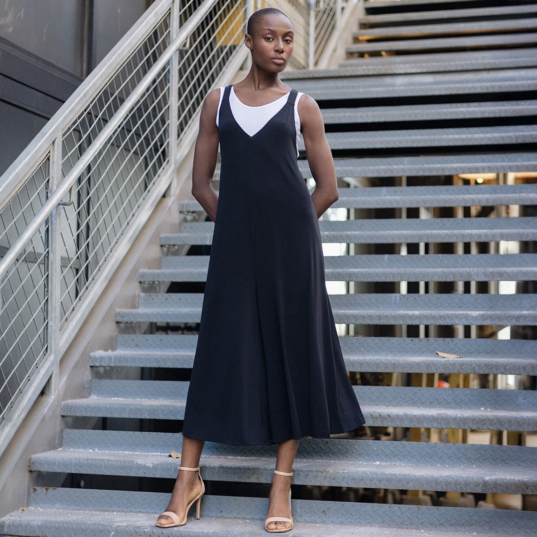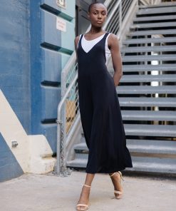 Embrace your feminity and bring your inner confidence to the forefront with our V-Neck Cross Back Jumpsuit! This exciting jumpsuit features a 14″ deep v-neckline, standard front straps that transition into cross back straps which create an alluring peekaboo back slither, and a flowing wide-leg gaucho silhouette—designed as always, with no ties or zippers, making it the perfect step-in-and-go piece. ♥ For those who prefer a less daring look, we recommend pairing this jumpsuit with one of our tanks (sold separately) to achieve a more modest finish.Carefree Travel Fabric – Soft Silky Knit Our signature poly blend fibers offer luxurious softness with lightweight, wrinkle-free comfort. This easy-care fabric is quick drying and cooler than linen or cotton, making it perfect for on-the-go wear.Wear Alone Or With Tank Wrinkle Free Travel Friendly Ultra Lightweight Soft Knit Fabric Breathable Jersey-Like Feel