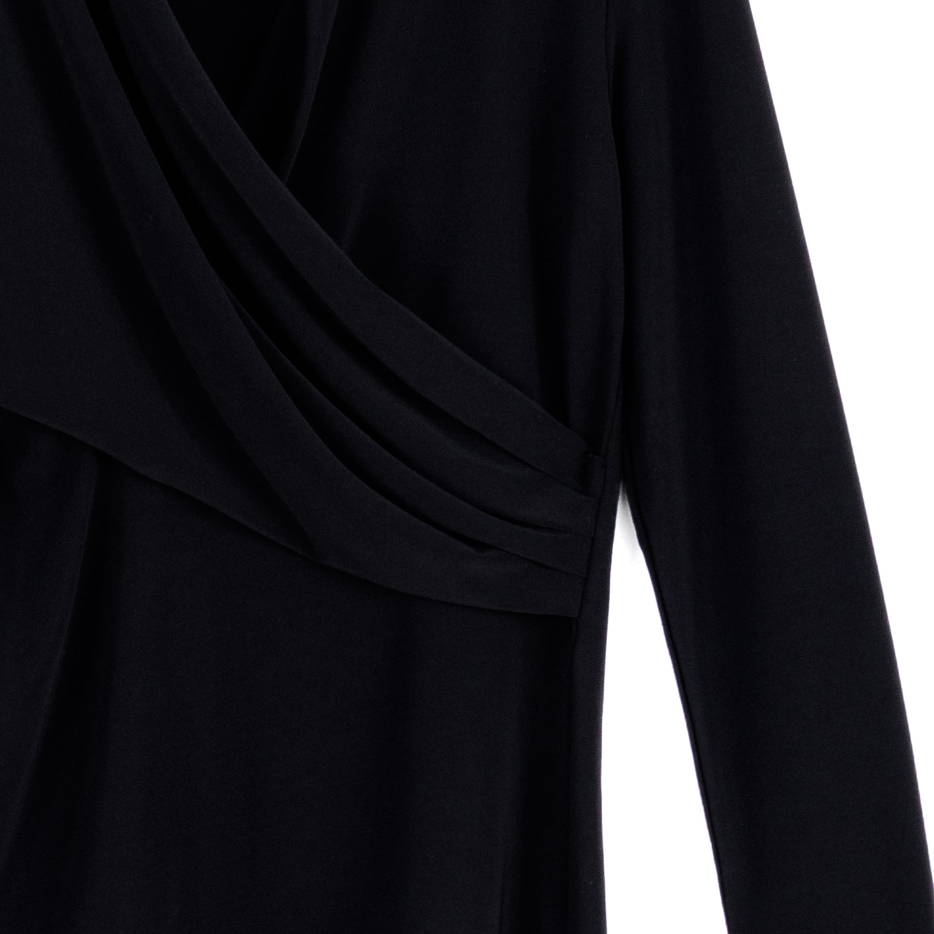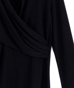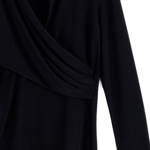 Our V-Neck Draped Pleat Top is a masterpiece of elegance and sophistication! This flattering top features long sleeves, a v-neckline with a draped pleat detail that creates a faux overlay that accentuates the figure, and a straight hemline. Carefree Travel Fabric – Soft Silky Knit Our signature poly blend fibers offer luxurious softness with lightweight, wrinkle-free comfort. This easy-care fabric is quick drying and cooler than linen or cotton, making it perfect for on-the-go wear.Wrinkle Free Travel Friendly Ultra Lightweight Soft Knit Fabric Breathable Jersey-Like Feel