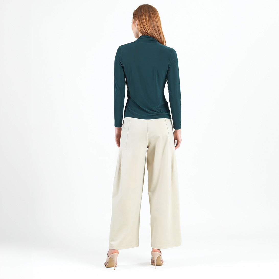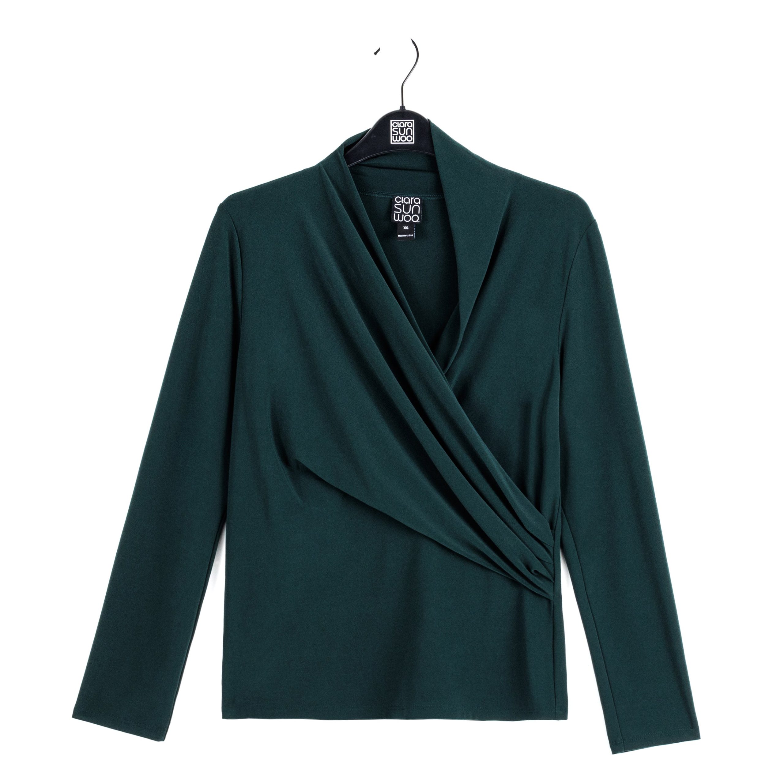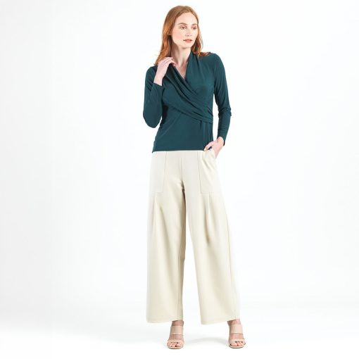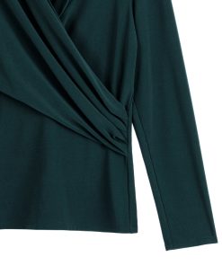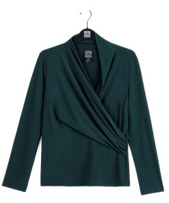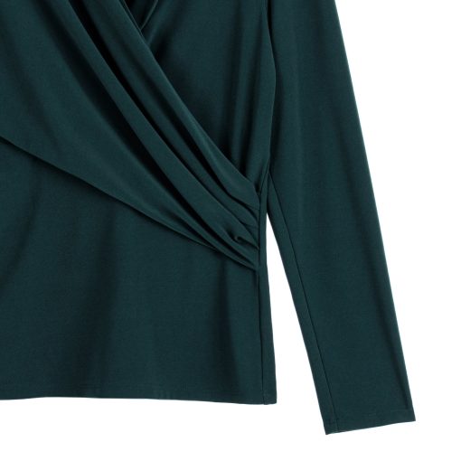 Our V-Neck Draped Pleat Top is a masterpiece of elegance and sophistication! This flattering top features long sleeves, a v-neckline with a draped pleat detail that creates a faux overlay that accentuates the figure, and a straight hemline. Our Hunter Green shade is a rich, deep earthy-green color comprised of both cool and warm undertones. Carefree Travel Fabric – Soft Silky Knit Our signature poly blend fibers offer luxurious softness with lightweight, wrinkle-free comfort. This easy-care fabric is quick drying and cooler than linen or cotton, making it perfect for on-the-go wear.Wrinkle Free Travel Friendly Ultra Lightweight Soft Knit Fabric Breathable Jersey-Like Feel