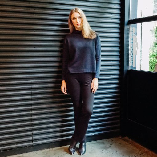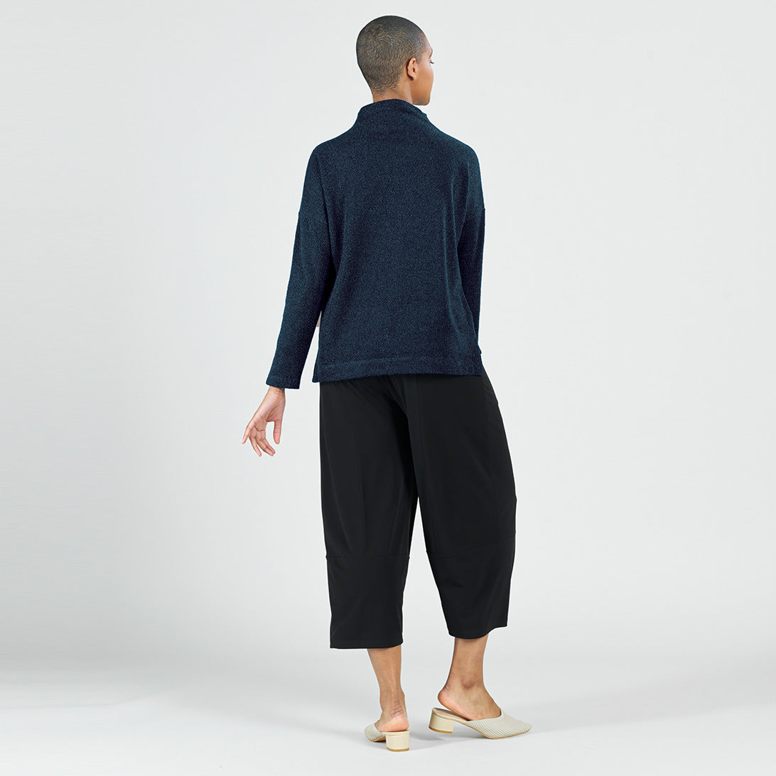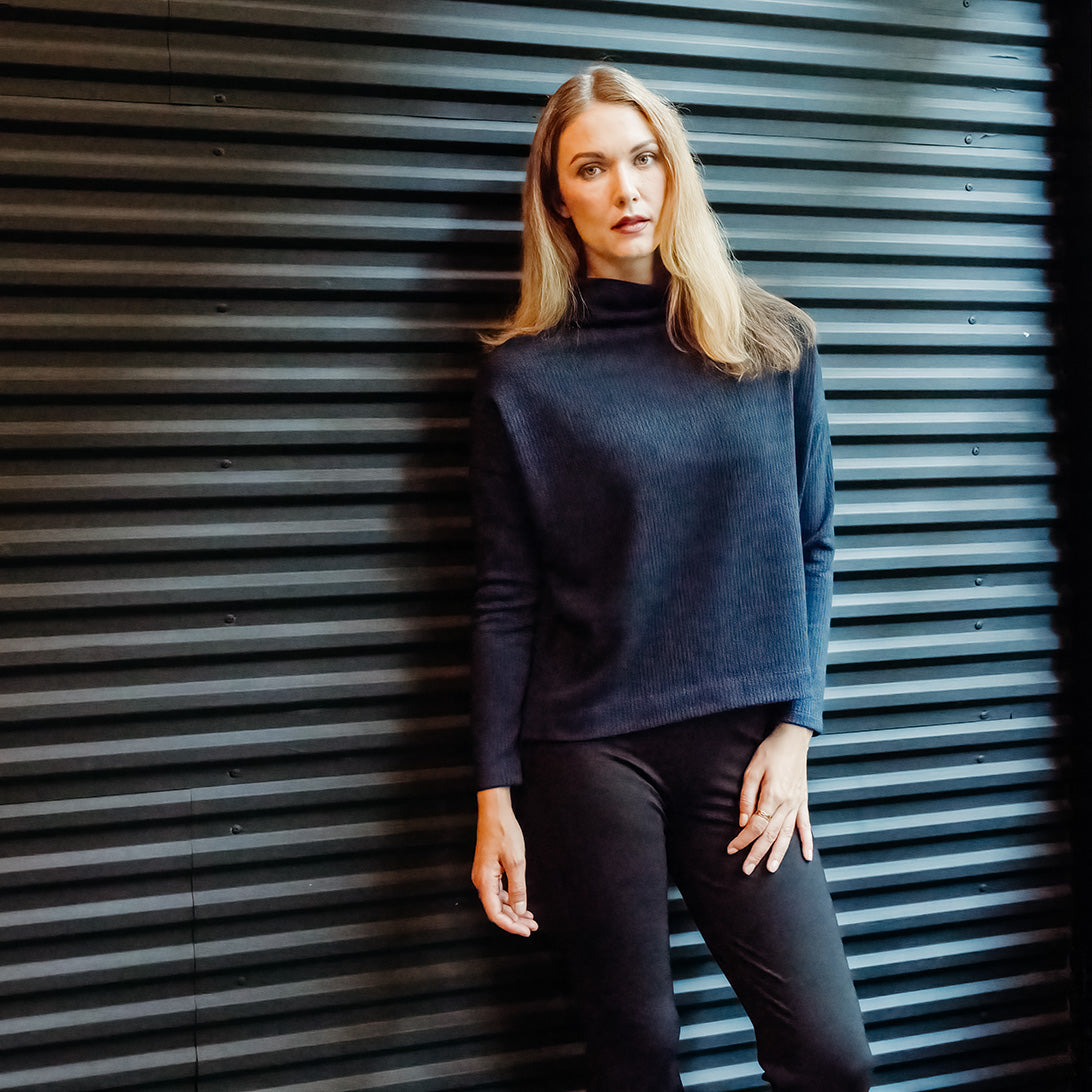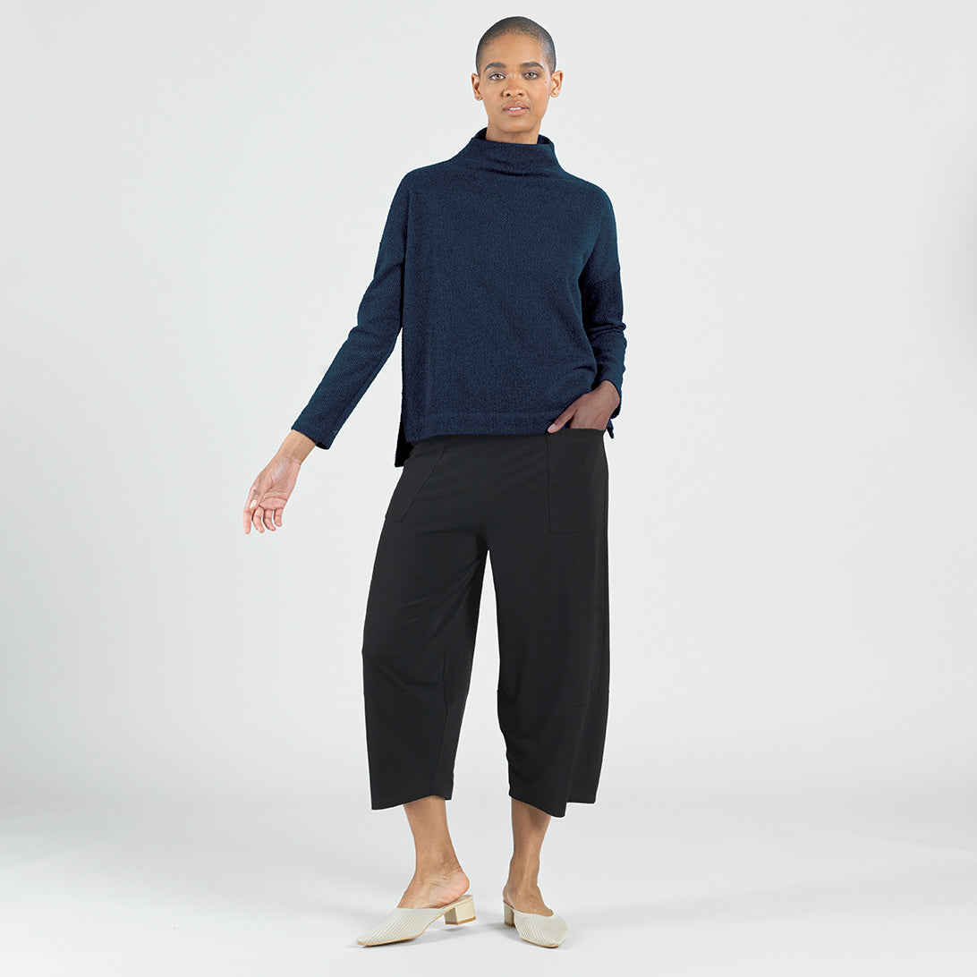 Introducing the Waffle Knit Funnel Neck Sweater Top – perfect for staying cozy on chilly days. Featuring a comfortable funnel neck and flattering hi-low hem, this sweater is designed to keep you warm while you look your best. So don’t let the cold weather stop you this season – grab a Waffle Knit! Our Navy shade is a dark, midnight blue-like color with a black two-tone effect. Soft Waffle-Texture Sweater KnitThis lightweight waffle-texture sweater knit is a must-have for layering without bulk. Crafted from a Poly-Blend material, it offers generous breathability and is easy to care for and travel-friendly. Plus, its open-woven pattern creates a luxurious texture.Travel Friendly Soft Waffle Texture Lightweight Breathable Sweater Knit