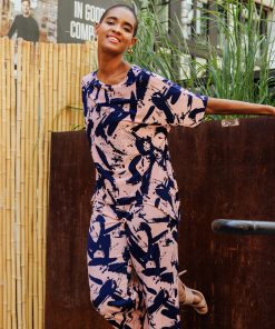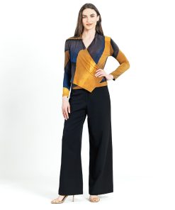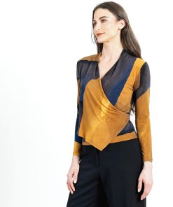 Clara Sunwoo Women’s Long Sleeve Crossover Faux Wrap Top – Tan Watercolor – Final Sale! | Tanmulti
