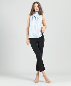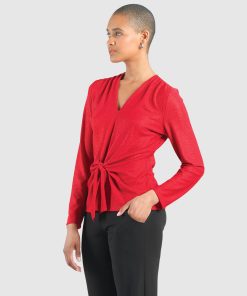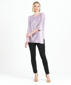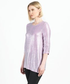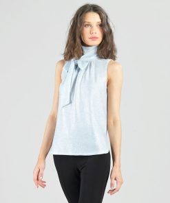 Clara Sunwoo Women’s Glitter Foil – Mock Neck-tie Detail Top – Pink – Limited Sizes! | Pink